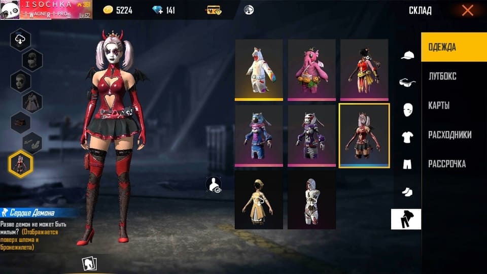 🚶‍♂️Персонажи: 26/30; 🐱Питомцы: Котенок, Механичекий щенок, Робо, Панда; ⭐️Пропуск: 11-17 сезоны; 👚Костюмы: 27; 🌈Скины на оружие: M4A1, M1014, AK, UMP, M14, SCAR, Гроза, MP40, Сковорода, СКС, Граната, Стена; ✨Скины на 🎒рюкзаки/🏂доски/🛸парашюты: 26/38/32; 🚙Скины на транспорт: ; 📈Уровень: 62; 💰Голда: 5224; 💎Алмазы: 141; ✔️Привязка: Google; ✔️Доступна смена ника; ✔️Доступна перепривязка аккаунта
