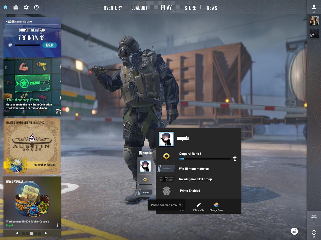 ⭐️Звание: Silver 2; 🌟Prime Status: Есть; ⏱Часов в игре: 61;