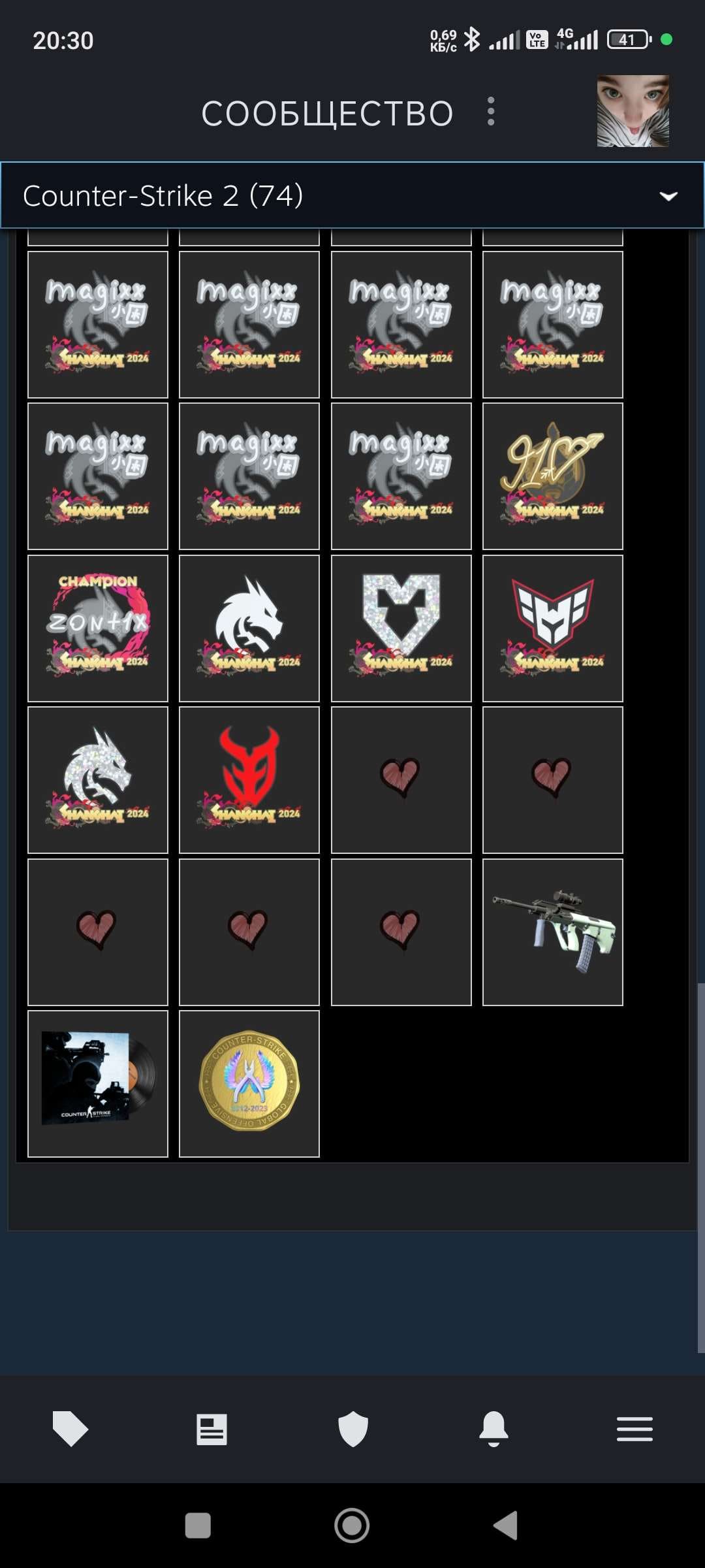 ✨Предметов в инвентаре: 74;
