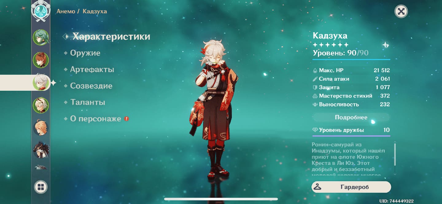 📈 Ранг: 58 🧍‍♀️ Персонажи: Аяка, Кадзуха, Сяо, Гань Юй, Чжун Ли, Венти, Мона, Дилюк, Ци Ци и другие ✨ Примогемы: 2100