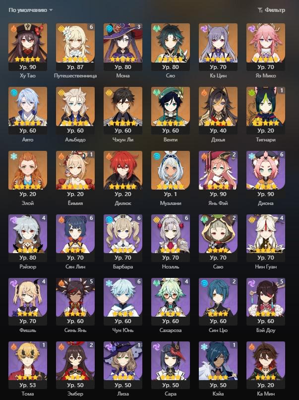 📈 Ранг: 61 🧍‍♀️ Персонажи: Ху Тао, Путешественница, Мона и другие 🦾 Оружие: 5 звезд ✨ Примогемы: 156