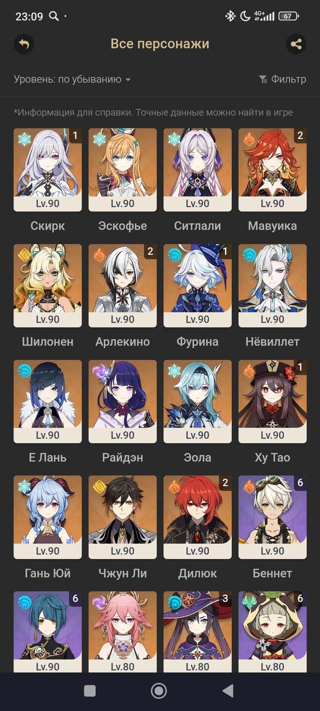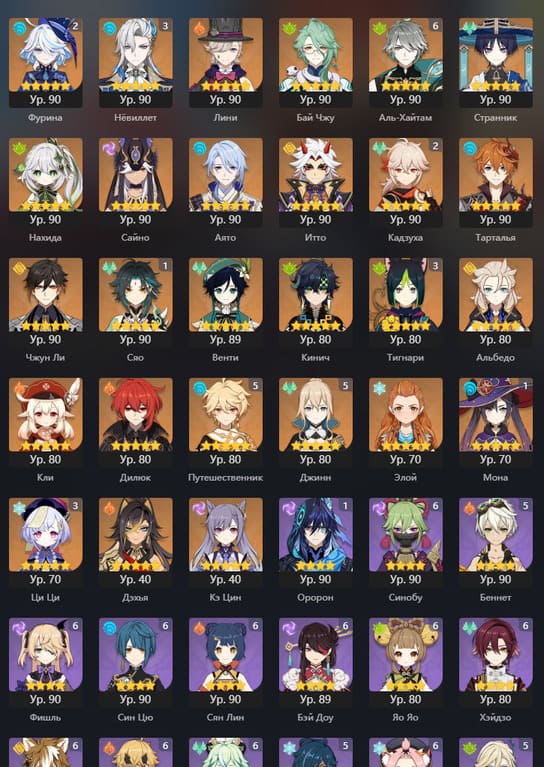 📈 Ранг: 58 🧍‍♀️ Персонажи: Арлекино, Нахида, Тигнари и другие ✨ Примогемы: 484