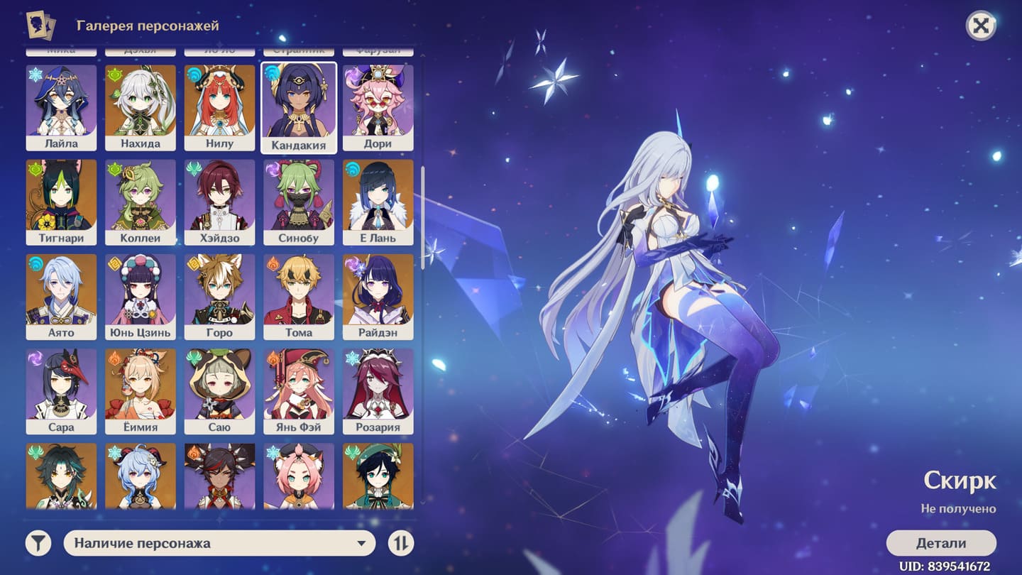 📈 Ранг: 48 🧍‍♀️ Персонажи: Скирк, Эскофье, Ситлали и другие 🦾 Оружие: 5 звезд ✨ Примогемы: 14