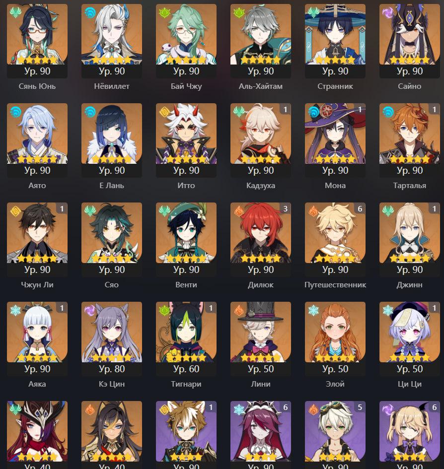 📈 Ранг: 60 🧍‍♀️ Персонажи: Мавуика, Аль-Хайтам, Аято и другие ✨ Примогемы: 115