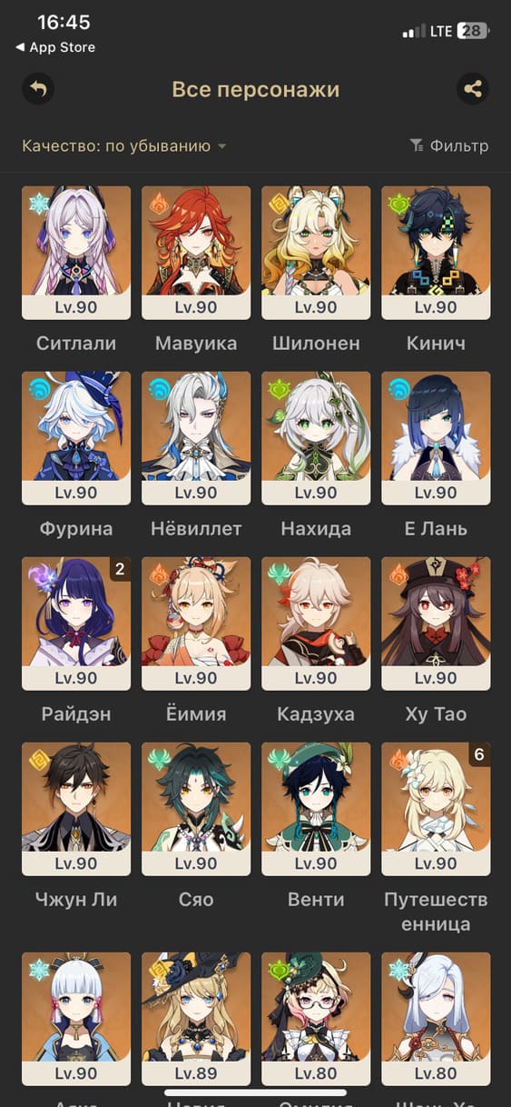 📈 Ранг: 59 🧍‍♀️ Персонажи: Аяка, Е Лань, Чжун Ли, Кадзуха, Сяо, Шэнь Хэ, Тарталья, Ху Тао, Мона, Гань Юй, Ёимия, Дилюк, Ци Ци, Эола, Итто и другие ✨ Примогемы: 1350