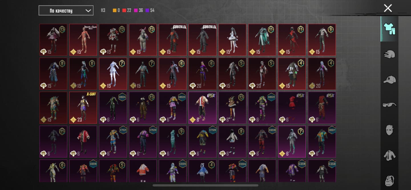 👚Топ костюмы: 22;⭐️Royale Pass: с 8 сезонна;🌈Скины на оружие: 17;