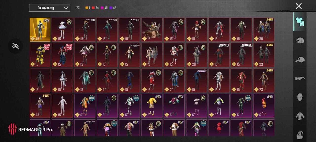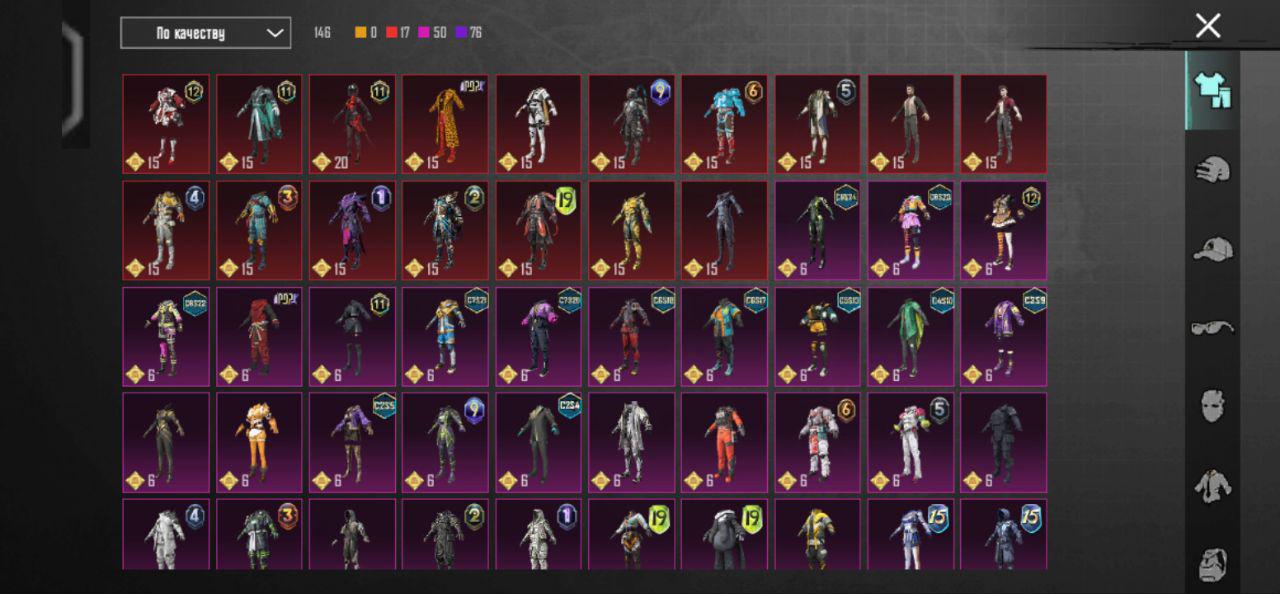 👚Топ костюмы: 33;⭐️Royale Pass: с 3 сезонна;🌈Скины на оружие: 17;